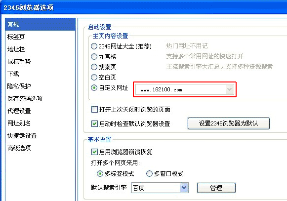 提示:若仍无法设置主页,请点击查看“主页修复”;或“把水保人的导航网站下载到桌面” 2345浏览器