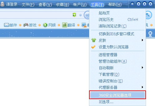 360浏览器设置主页的方法: 1)首先,打开浏览器上部菜单栏的“工具”栏,在下拉列表中选择“360安全浏览器选项”,如下图所示: