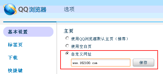 2)然后在打开的对话窗口中选择“自定义网址”并输入“http://www.4x5y.com/”,然后点击“保存”按扭即可,如图所示: