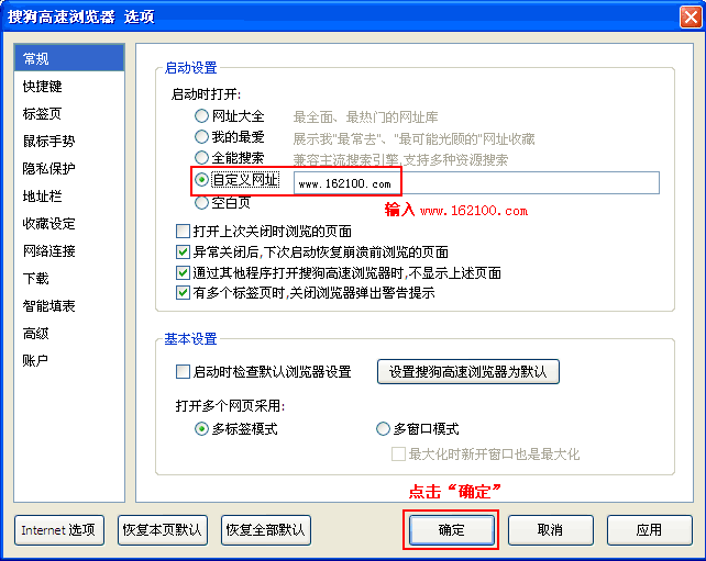 提示:若仍无法设置主页,请点击查看“主页修复”;或“把水保人的导航网站下载到桌面” 搜狗浏览器